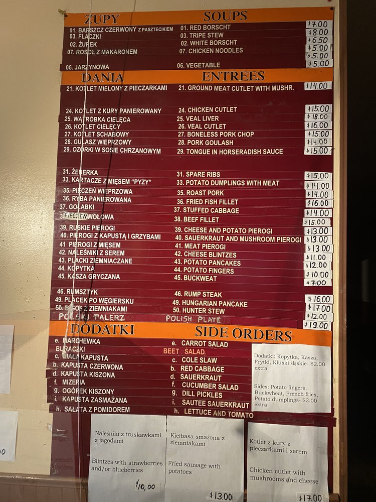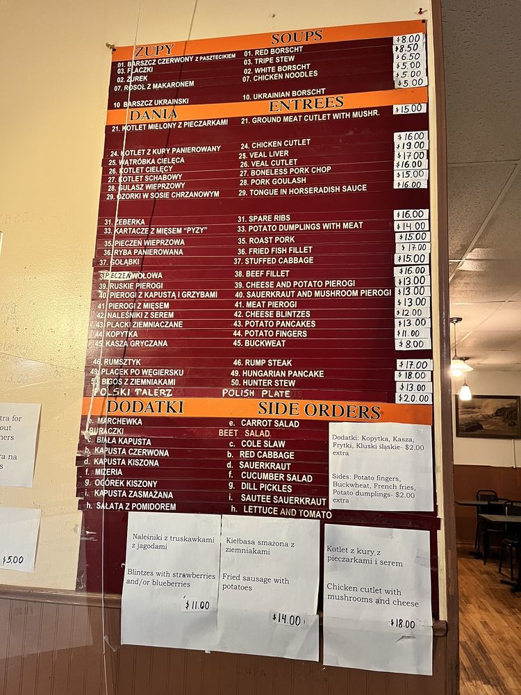 Highlights include the polish plate with kielbasa, potato pancakes, meat pierogi, mashed potatoes, and stuffed cabbage, as well as the boneless pork chop, cheese potato pierogis, and hearty borscht. The authentic taste and large portions make this spot a favorite among locals and Polish expats. Don't miss out on this taste of traditional homemade Polish fare at Pyza!